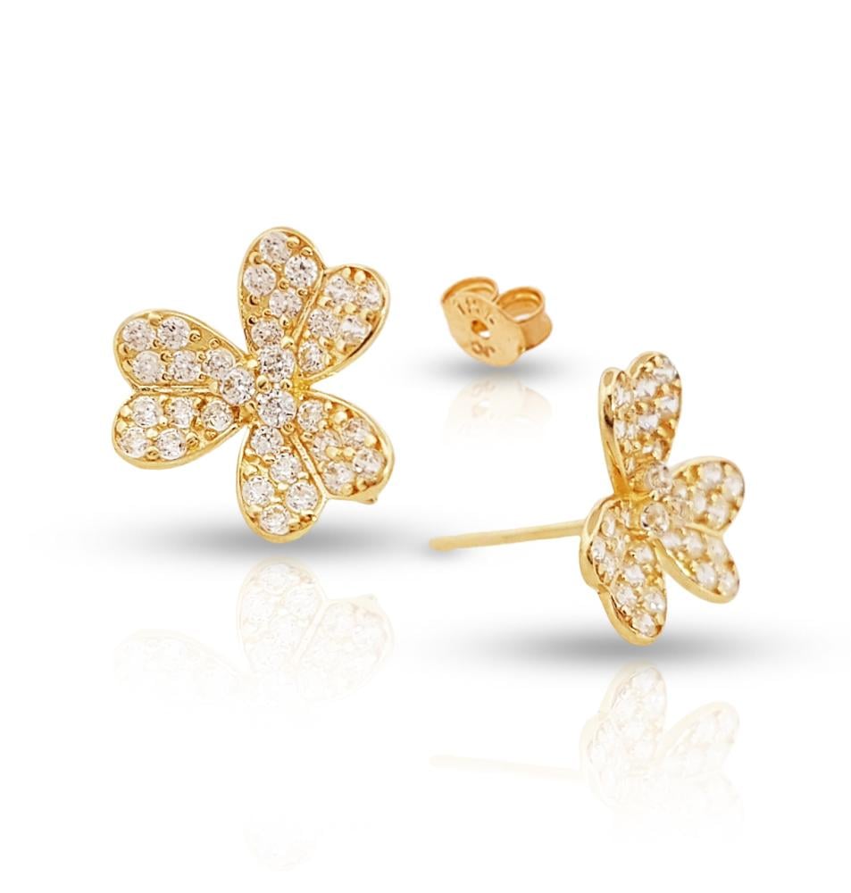 حلق الذهب عيار 18 بشكل وردة هو قطعة مجوهرات ساحرة تتميز بجمالها الطبيعي وسحرها الخاص. تصميم الوردة يمنح الحلق مظهرًا أنثويًا رقيقًا مما يجعله مثاليًا للإطلالات الأنيقة.