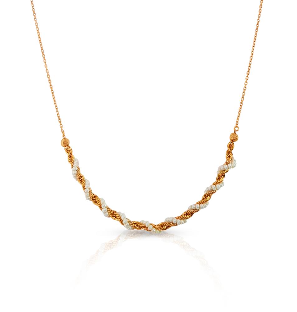 عقد ذهبي بلمسة لؤلؤية ناعمة… أناقة مجدولة تلفت الأنظار