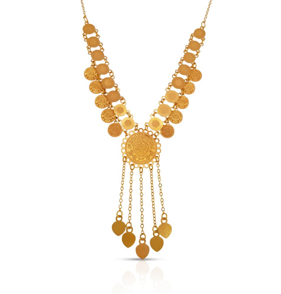 عقد ذهب أنيق من عبدالغني عيار 21 يتميز بتصميمه الراقي الذي يعكس جمال الفخامة. مصنوع من ذهب عيار 21 ذو الصلابة العالية، ليضيف لمسة من الجمال والتألق لإطلالتك.