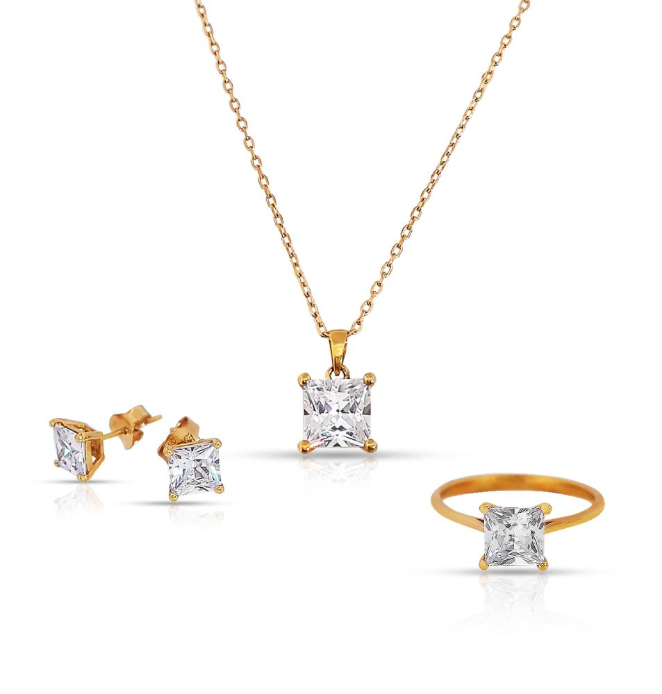 نصف طقم ذهب بتصميم الوردة - عيار 18